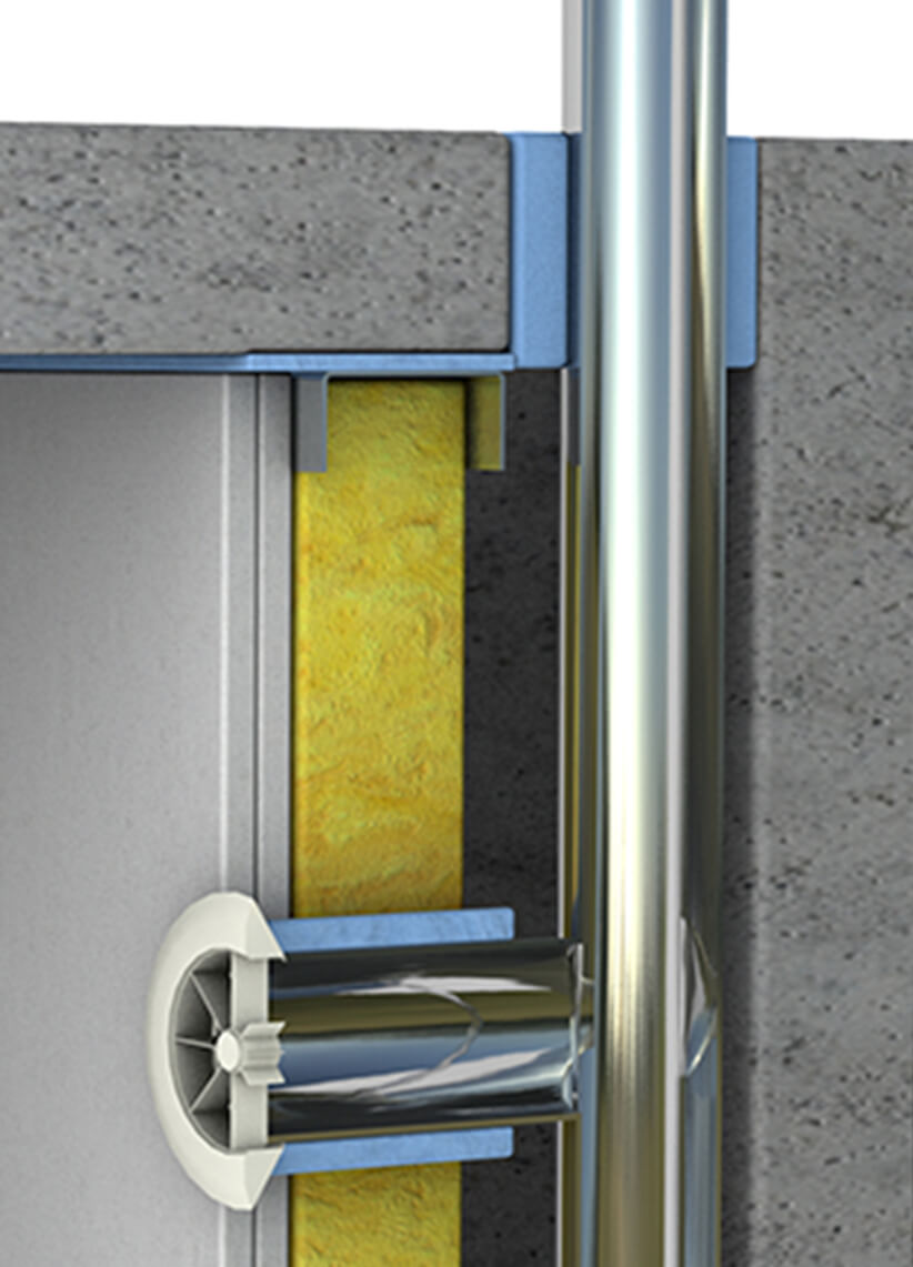 Le matériau absorbant ne constitue pas un isolant acoustique à lui seul mais contribue à l’amortissement du son dans le système masse-ressort-masse et empêche un phénomène de résonance entre les masses qui dégraderait les performances du système.