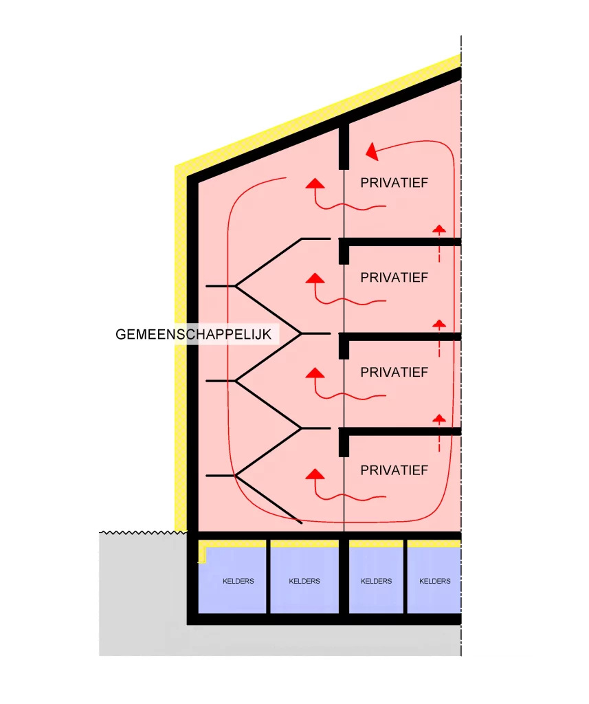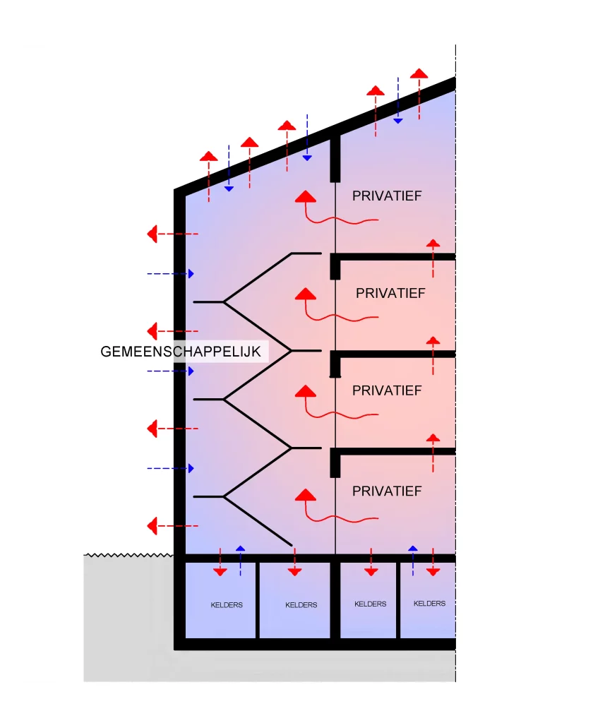 Zelfs als sommige isolatiewerkzaamheden voordeliger lijken voor bepaalde mede-eigenaars, is de energieverbetering van de gebouwschil eigenlijk voordelig voor de hele mede-eigendom. Vooral om het schoorsteeneffect in het trappenhuis en de warmteoverdracht van verdieping naar verdieping te vermijden.