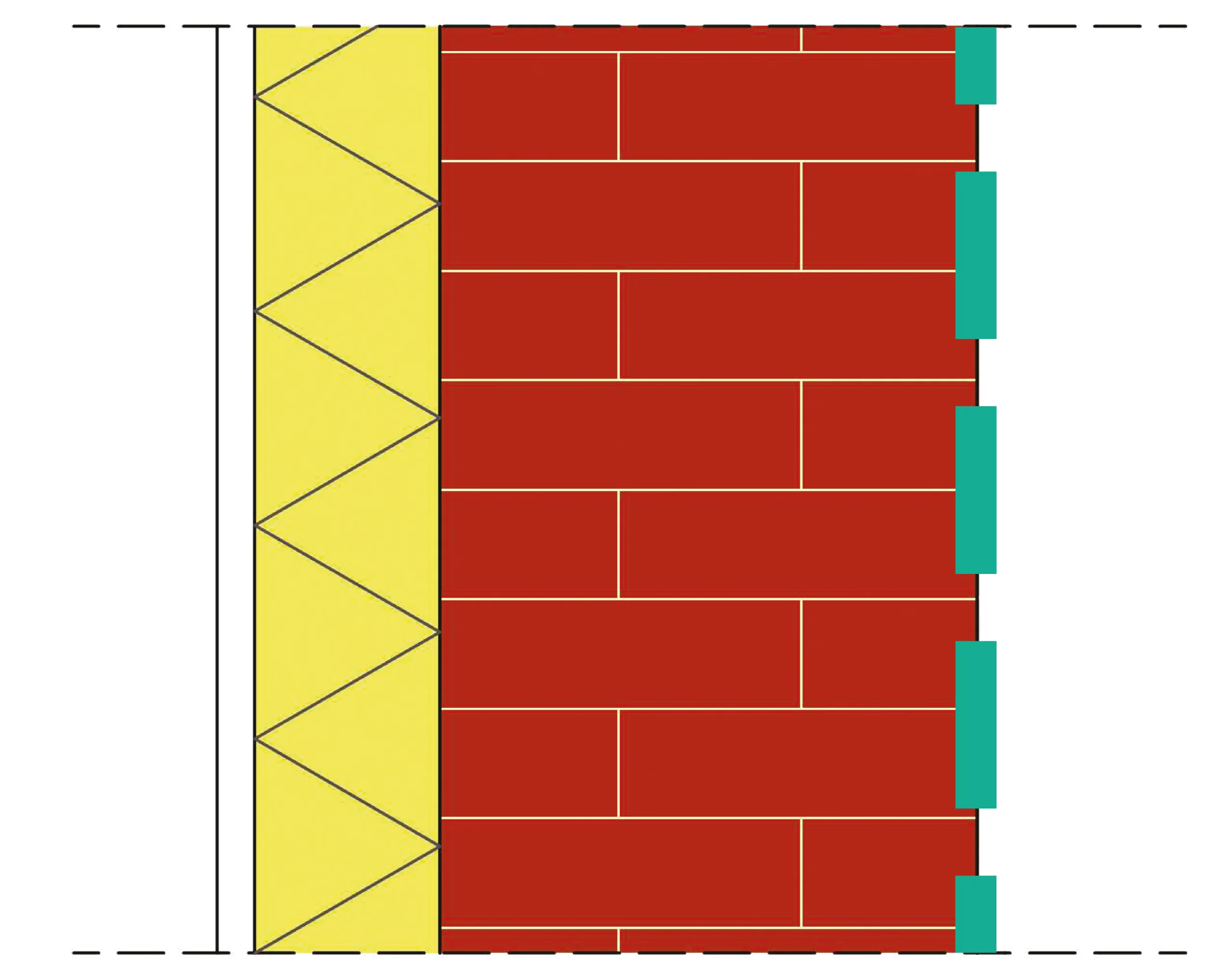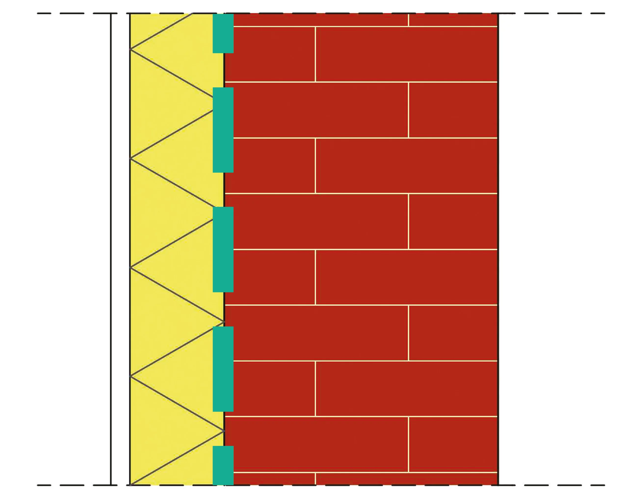 Als u de zichtbare bakstenen binnen wil behouden, moet de luchtdichtheid (membraan of bepleistering) aan de warme buitenkant, tussen de muur en de isolatie, aangebracht worden.